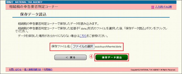 ④ ファイルを選択後、「保存データ読込」ボタンをクリックします。