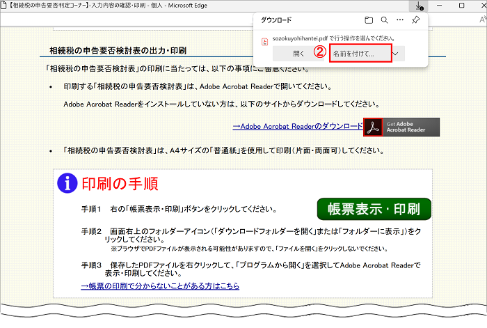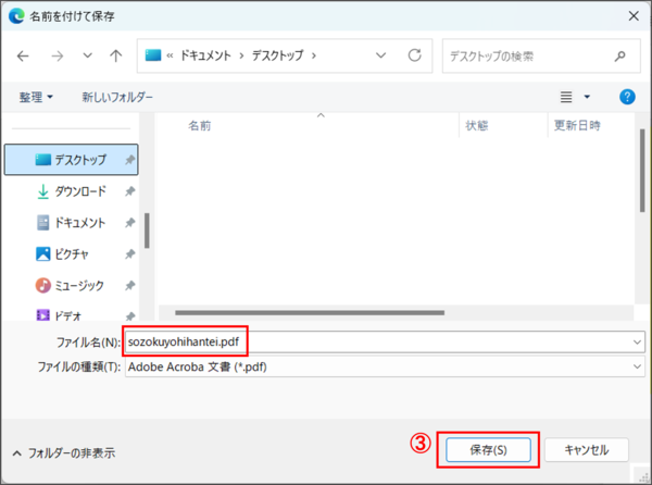 なお、ファイル名の初期設定は「sozokuyohihantei.pdf」となっていますので、適宜、変更してください。