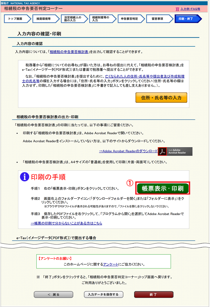 申告要否検討表PDFファイル(「入力内容の確認・印刷」画面)