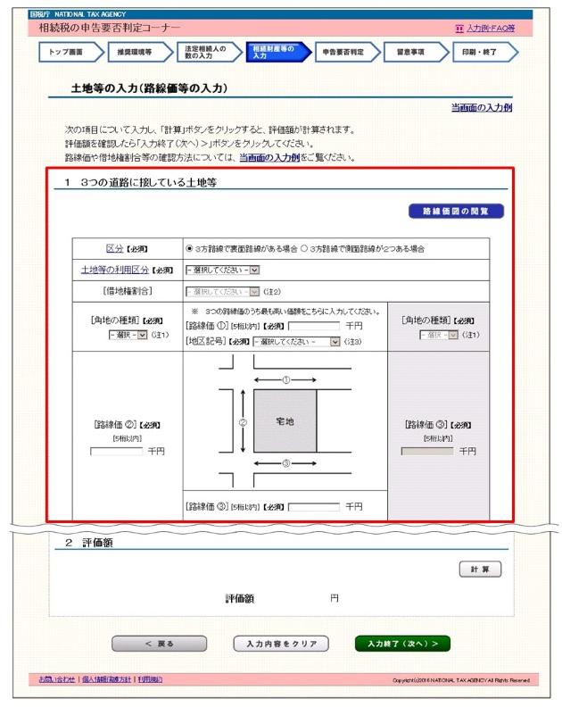 4 「3つの道路に接している土地等」画面