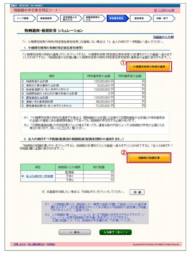 1 「特例適用・税額計算 シミュレーション」画面
