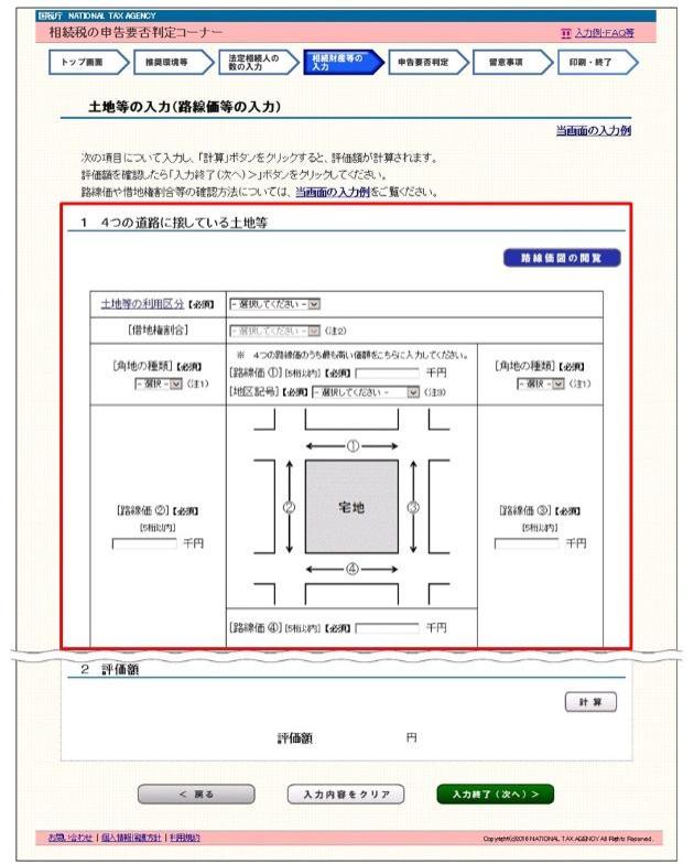 5 「4つの道路に接している土地等」画面