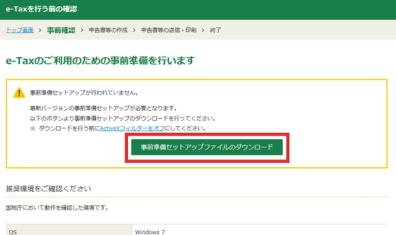 推奨環境等をご確認いただき、事前準備セットアップの更新がお済みでない場合は、設定を行ってください。