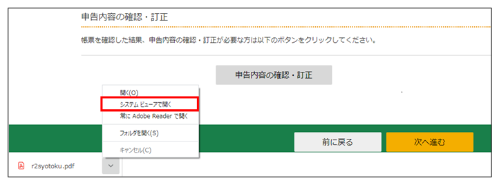 ③ 「システムビューアーで開く」をクリックして、PDFファイルをAdobe Acrobat Reader DCで表示してください。
