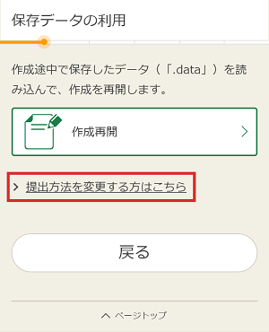 「提出方法を変更する方はこちら」をタップしてください。