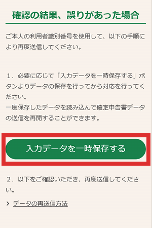 「入力データを一時保存する」をタップしてください。