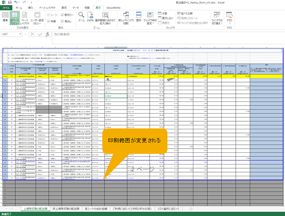 2 改ページの位置をドラッグし、印刷範囲を変更します。