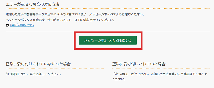 「メッセージボックスを確認する」を押してください。