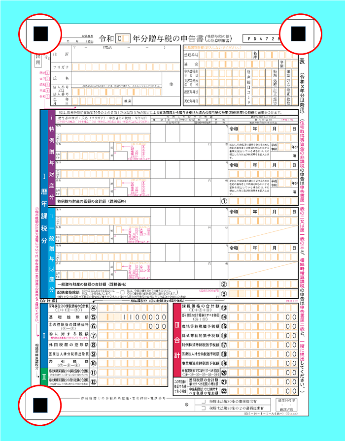 (例)申告書左上の3点マーク