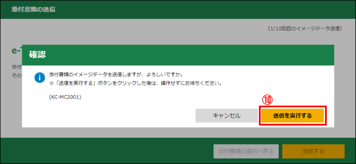 ⑩ 確認のモーダル画面が表示されます。「送信を実行する」ボタンをクリックしてください。