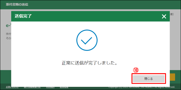 ⑫ 添付書類のイメージデータ送信を終了する場合には、「添付書類の送信を終了する」ボタンをクリックしてください。