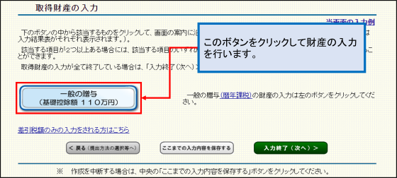 1 取得財産を入力する前の入力例-表示ボタンが4つの場合