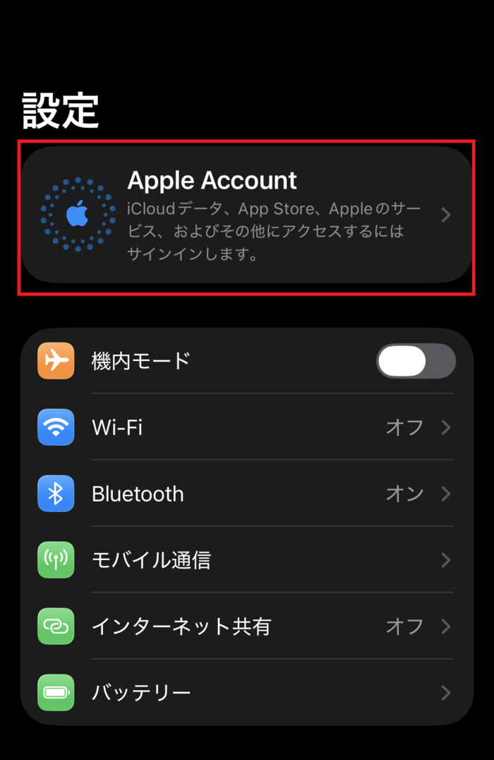 「Apple Account」をタップしてください。