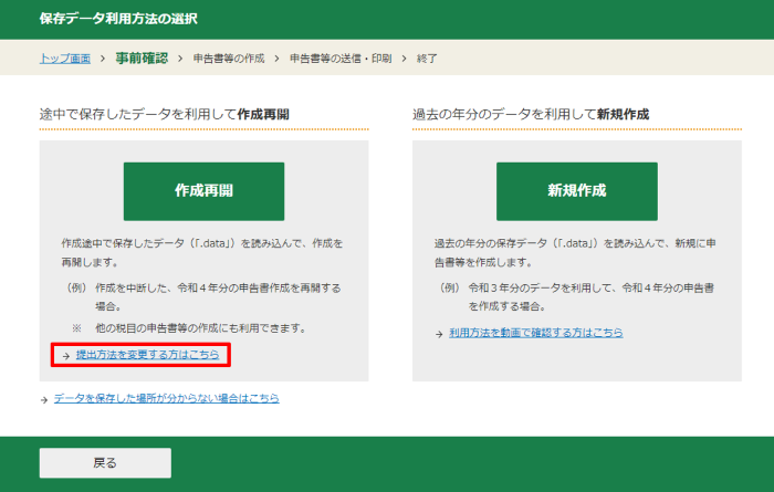 「提出方法を変更する方はこちら」をクリックしてください。