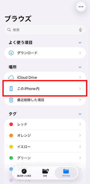 ここでは、「このiPhone内」に保存した場合の手順です。