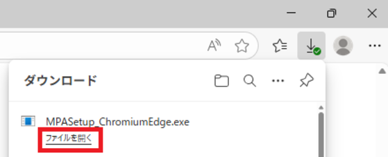 - 別の画面が開き、画面右上にダウンロードメニューが表示されますので、「ファイルを開く」をクリックします。