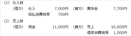 税抜経理方式による場合は、課税売上げに係る消費税等の額は仮受消費税等とし、課税仕入れに係る消費税等の額については仮払消費税等とします。