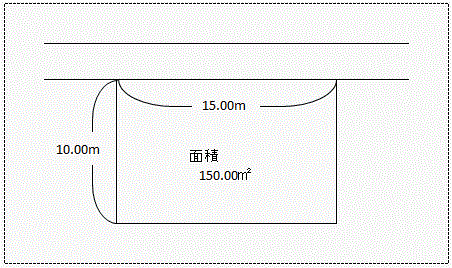 下図の場合の道路に接している距離(間口距離)は、「15.00m」になります。