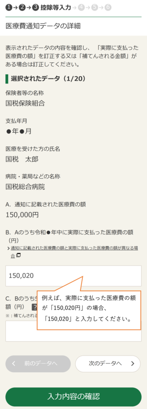 医療費通知データの場合