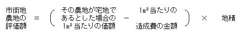 宅地比準方式とは、その農地が宅地であるとした場合の1平方メートル当たりの価額からその農地を宅地に転用する場合にかかる通常必要と認められる1平方メートル当たりの造成費に相当する金額を控除した金額に、その農地の地積を乗じて計算した金額により評価する方法をいいます。