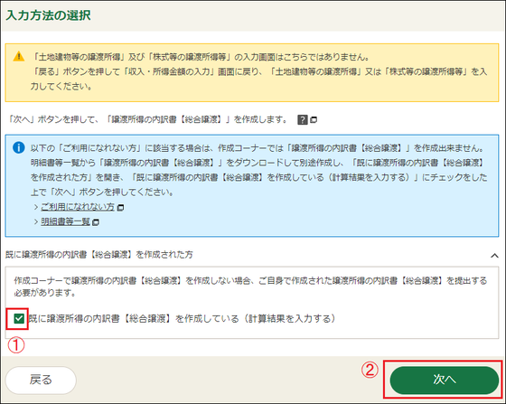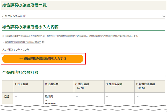 (2) 「総合課税の譲渡所得一覧」画面で入力する場合