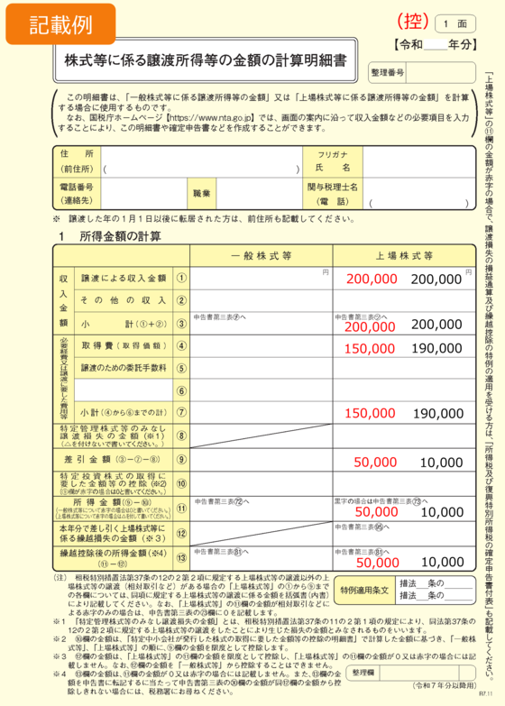 ⑵ 株式等に係る譲渡所得等の金額の計算明細書