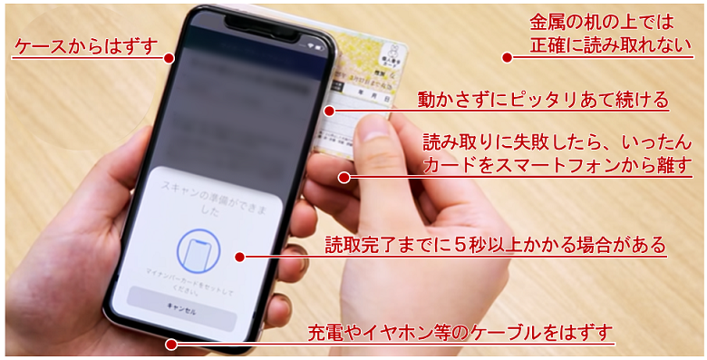 スマートフォンでマイナンバーカードをうまく読み取れないときの確認事項