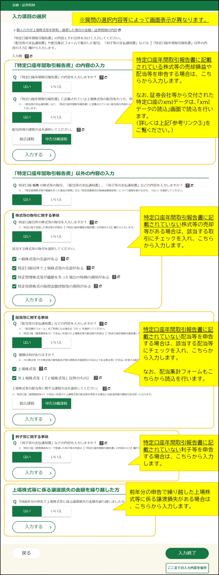 (参考リンク③)証券会社等から交付された電子データ(xml形式)を読み込む場合はこちら
