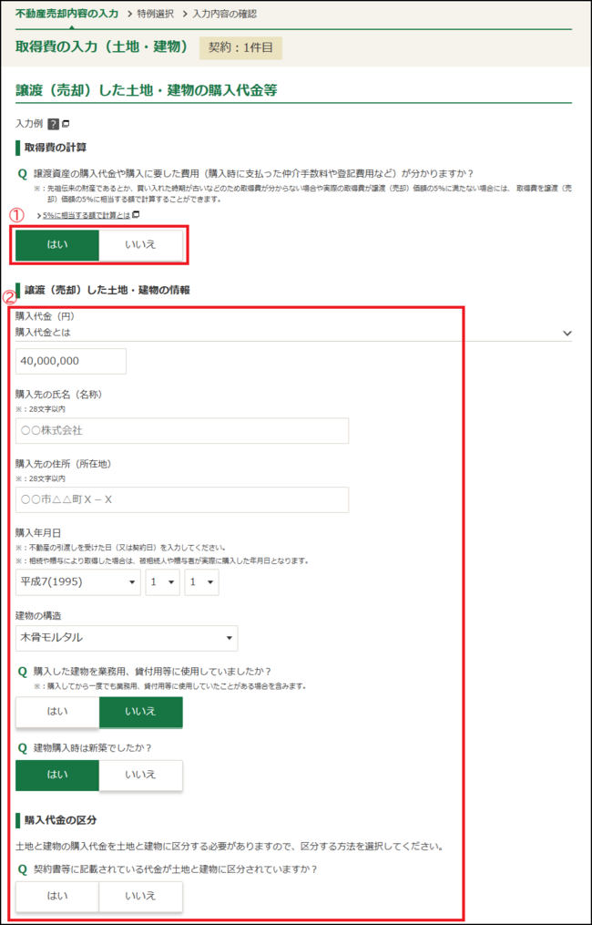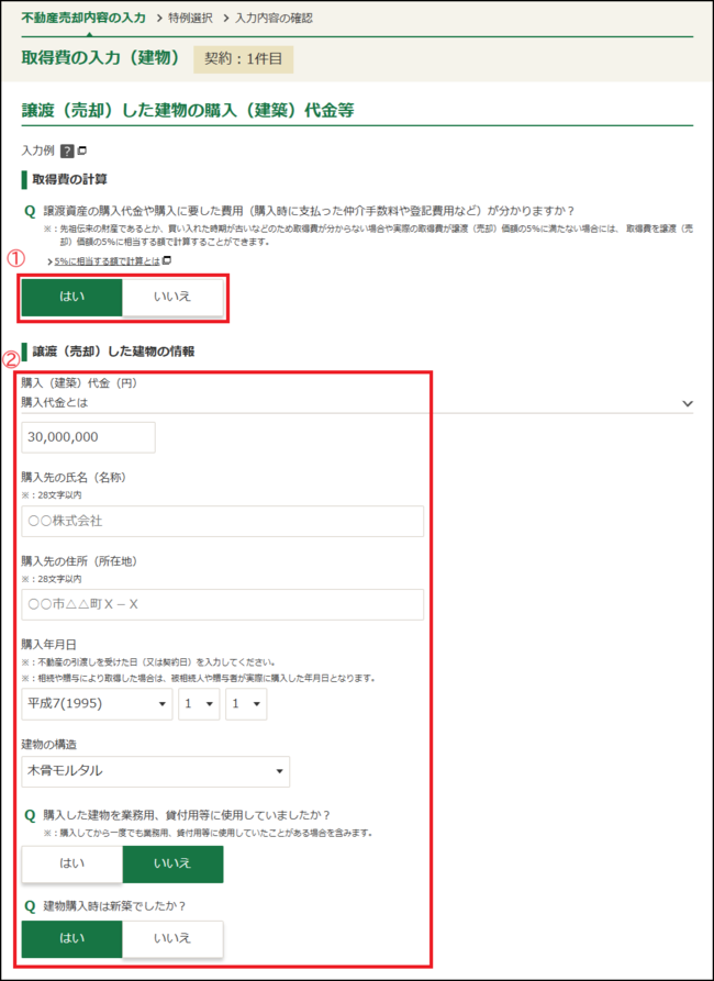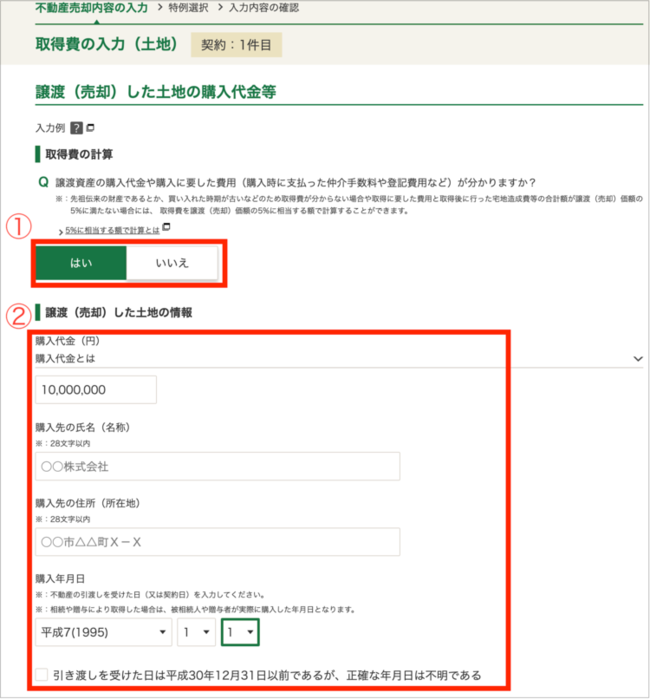 取得費の入力(土地・建物)