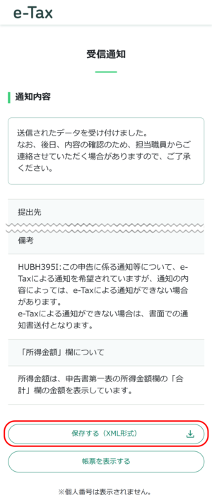 送信した申告書等が一覧で表示されますので、ダウンロードしたい申告書等を選択し、表示された画面の「保存する(XML形式)」ボタンを押して、「.xtx」データのダウンロードを行ってください。