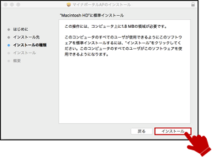 - インストールの確認が表示されますので、「インストール」ボタンをクリックします。