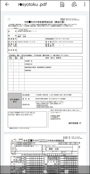 帳票PDFが表示されるとともに、端末内の「ダウンロードフォルダ」に保存されます。