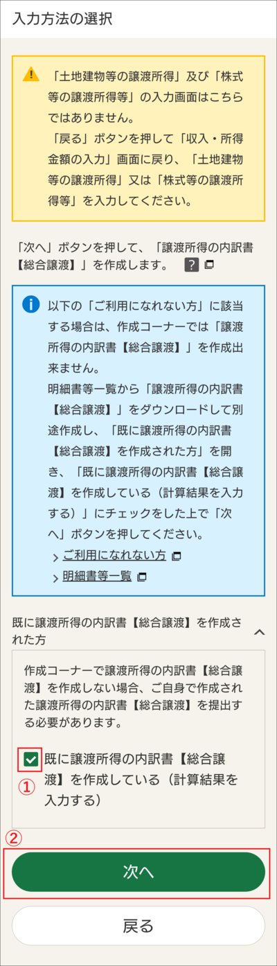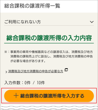(2) 「総合課税の譲渡所得一覧」画面で入力する場合