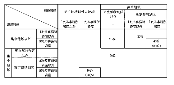 ※ 主たる事務所資産の移転を伴う買換えについて、令和5年4月1日以後に譲渡資産を譲渡し、同日前に買換資産を取得している場合には、表内のカッコ内の課税割合となります。