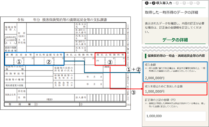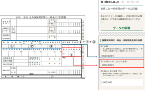 実際の契約等の状況により、課税関係が異なる場合がありますので、一時所得の「収入金額」及び「収入を得るために支出した金額」については、保険会社から送付された書類により、正しい金額が連携されているかご確認ください。
