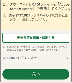 「申告書等を表示・印刷する」ボタンを押してください。