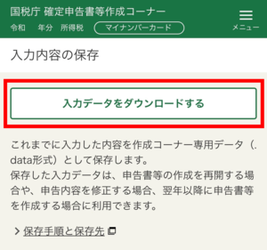 1.「入力データをダウンロードする」をタップすると、データのダウンロード画面が立ち上がります。
