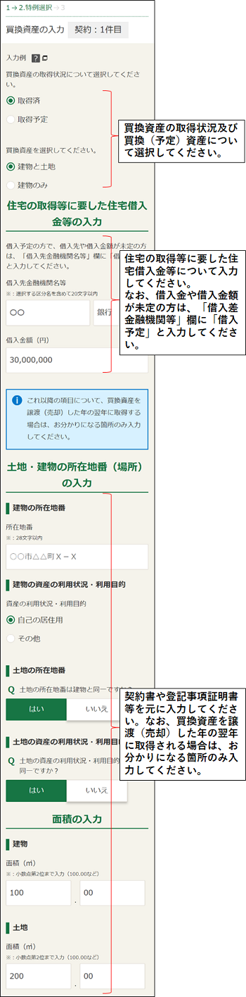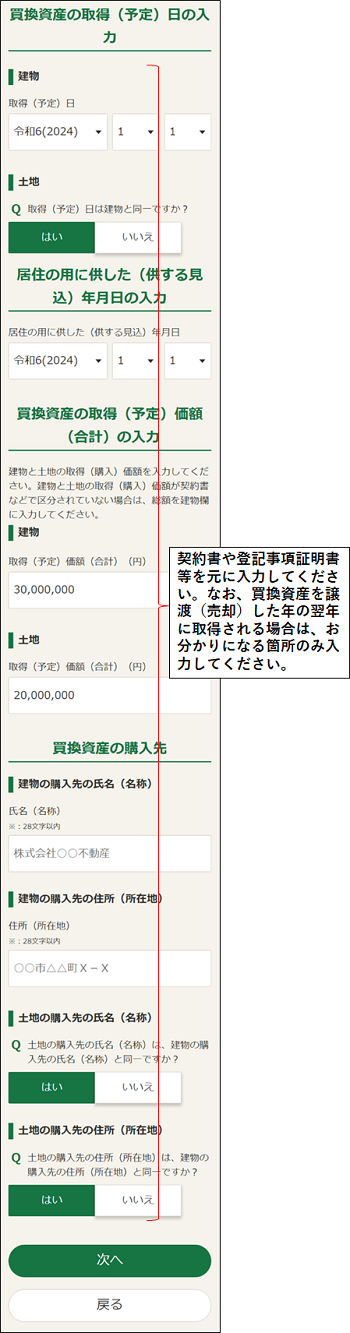買換資産の入力例