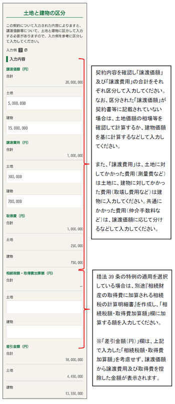 土地と建物の区分の確認の入力例