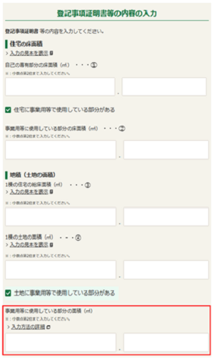 事業用等に使用している部分の床面積を下の画面・計算方法で説明します。